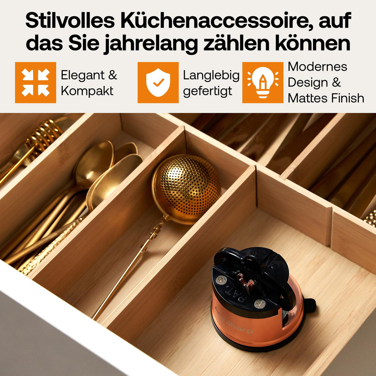 Kompakt und leistungsstark – AnySharp-Schärfer passen mühelos in jede Küchenschublade. Ausgestattet mit Wolframkarbid-Schärfeinsätzen sind sie für eine langanhaltende Leistung gemacht.