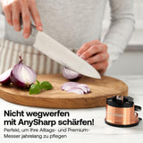 Das AnySharp-Sortiment macht das Messerschärfen einfach und bringt stumpfe Klingen in Sekundenschnelle wieder in Bestform. Entwickelt für Küchenmesser aller Art – ein Must-have für jeden Haushalt.